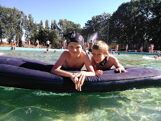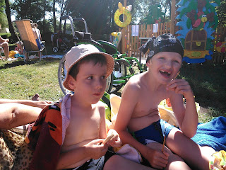 szczerbaty Nikodem i Jaś na basenach podczas obozu