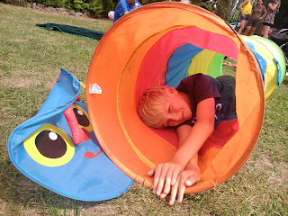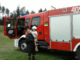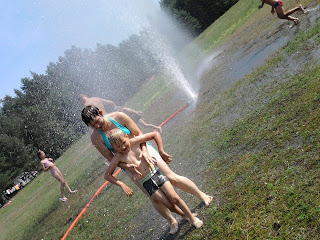 Prysznic pod wężem strażackim. Dziękuję cioci Eli (na zdjęciu) za zastąpienie mnie (mamy) podczas tej zabawy.