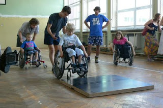 Zajęcia podczas których Nikodem uczy się samodzielności na wózku